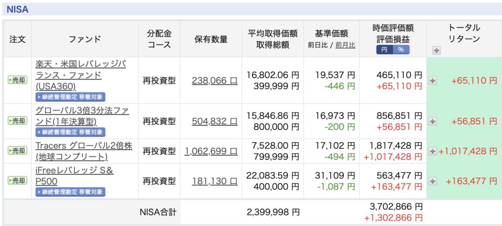 なのでせっかくの非課税枠では利益が最大にできるように、レバレッジファンドを選びました。