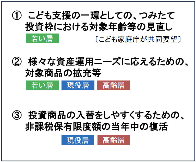 金融庁のHPによると、以下の3つを要望しているとのこと。